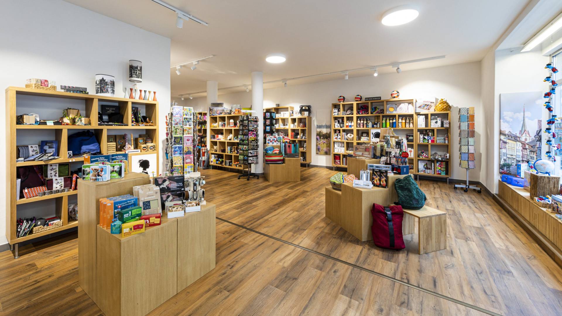 Im oberen Ladengeschoss finden Grosse allerlei Dingsbums. Schön Verspieltes zum Schenken oder selber Brauchen aus den Bereichen Papeterie, Küche und Haushalt, Denksport, Puzzle und Spiele.